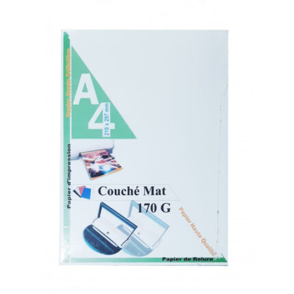 Rame page de garde A4 couche mat ET brillant Grammage 170 g/m² Dimensions 297 x 210 mm Nombre de Feuilles: 100 Feuilles.